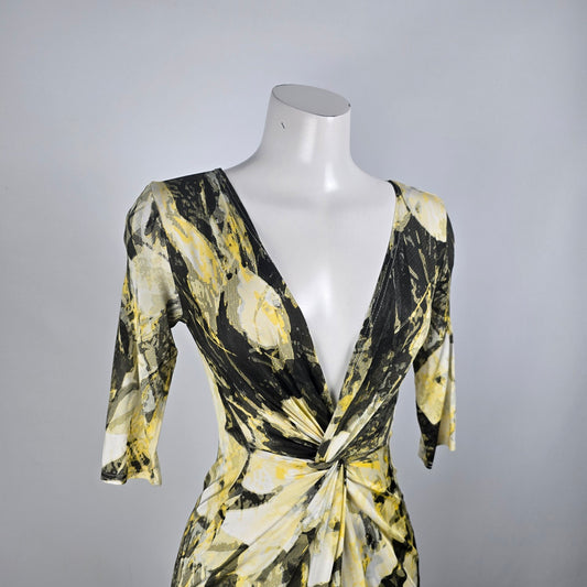 Linda Lundstrom Yellow & Black Deep V Midi Dress Size S