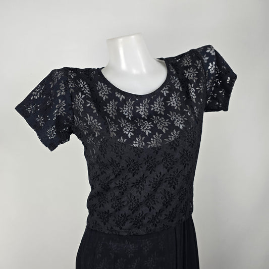 Vintage Papillon Black Floral Lace Overlay Maxi Dress Size S