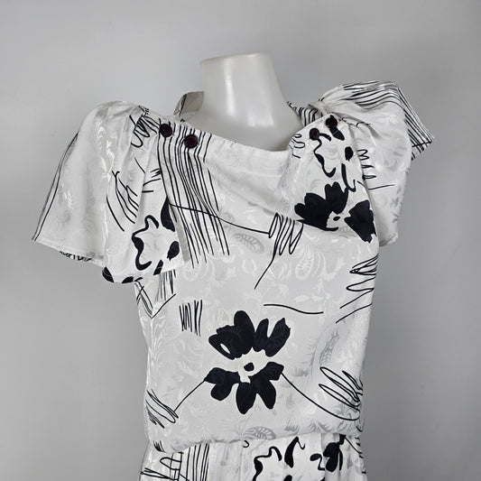 Vintage Irving Nadler Black & White Floral Top & Skirt Set Size XS