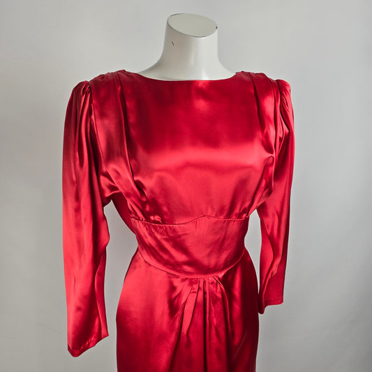 Vintage Handmade Red Satin Dress Size S