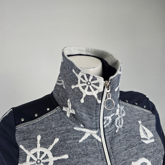 Art by Dolcezza Blue Nautical Zip Up Jacket Size S