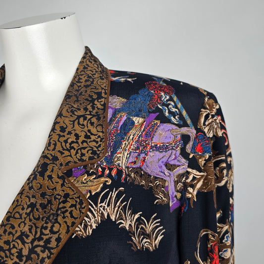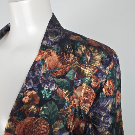 Vintage Dorthy Schoelen Platinum Black Floral Print Blazer Size S