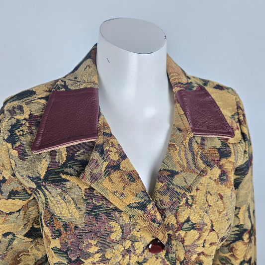 Vintage The Jacket Shop Floral Tapestry Leather Trim Jacket Size S
