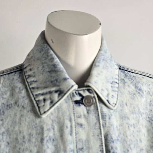Avec Les Filles Acid Wash Oversized Ruffle Denim Trucker Jacket Size XS/S