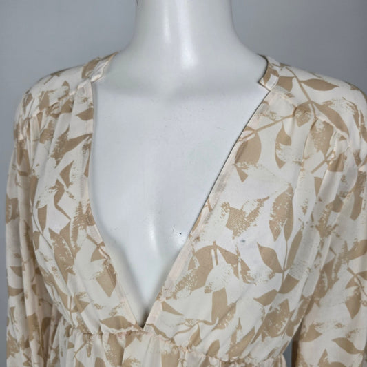 Pretty Angel Brown Linen Lace A-Line Top Size S/M