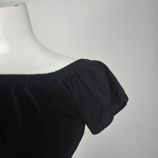 Vintage Richard Warren Black Cotton Button Back Cropped Blouse Size 6