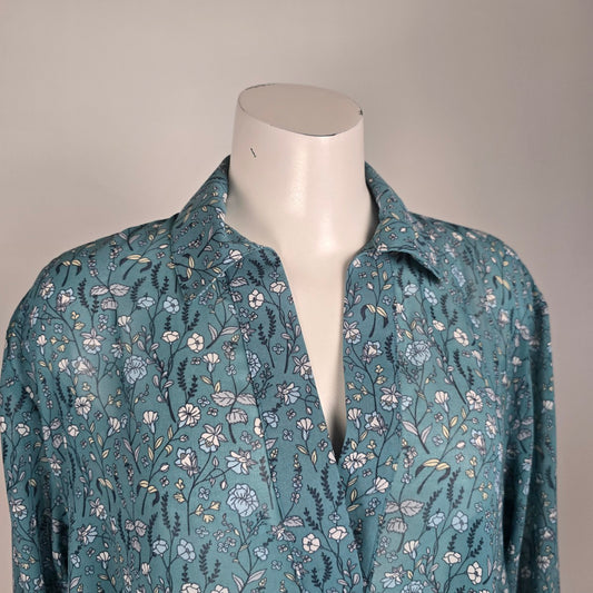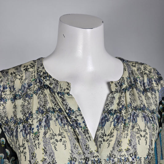 Cabi Blue Floral Sheer Collared High Low Blouse Top Size XS