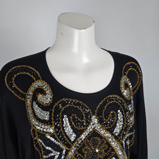 Vintage Black Sequined Beaded Floral Western Long Sleeve Top Size S