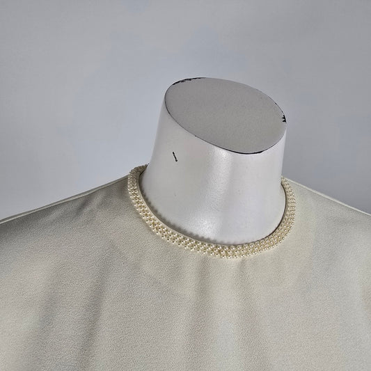 Vintage Talbots Petites Cream Beaded Neck Detail Blouse Top Size 4