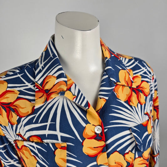 Relax Tommy Bahama Blue Tropical Print Button Up Blouse Top Size S