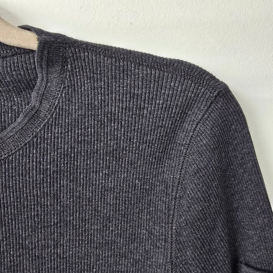 Ralph Lauren Grey Cotton Ribbed Long Sleeve Top Size S