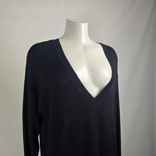 Hudson North Black Merino Wool Knit Midi Dress Size L