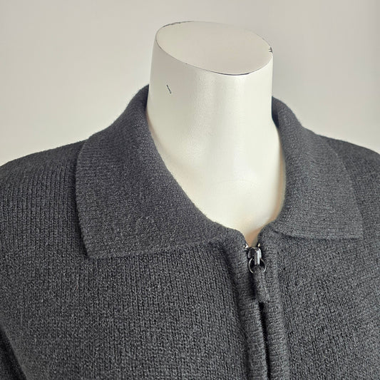Talbots Black Marled Long Sleeve Zip Front Cardigan Size L Petite
