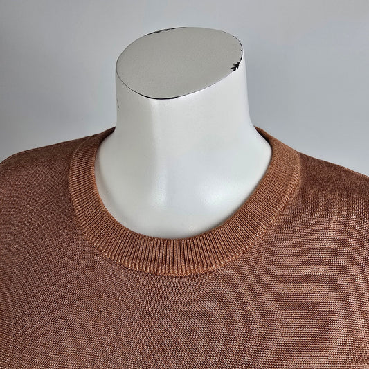 Oscar De La Renta Brown Short Sleeve Knit Sweater Size L
