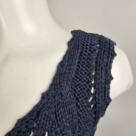 Vintage Modea Marine Blue Cotton Knit Vest Size S