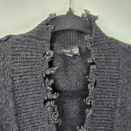 C'est Moi Black Cotton Distressed Hem Knit Cardigan Size M/L