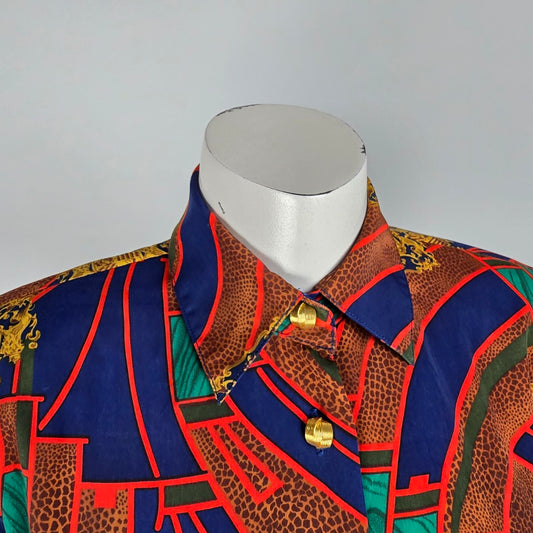 Vintage Chagal Red Lion Crest Print Button Up Blouse Size 6