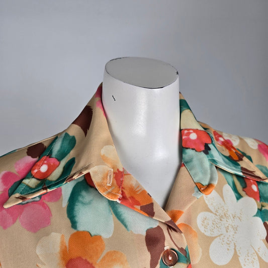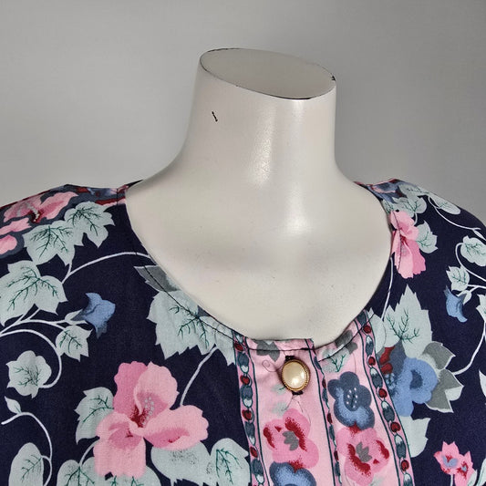 Vintage BBW Sport Floral Short Sleeve Blouse Top Size L