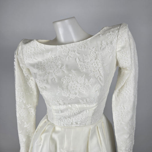 Vintage White Lace Detail Boat Neck Wedding Dress Size XS