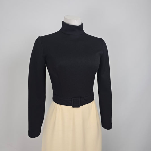Vintage Date Mate Black & Cream Long Sleeve Maxi Dress Size XS