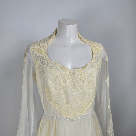 Vintage Bridallue Cream Ruffle Lace Wedding Gown Size S