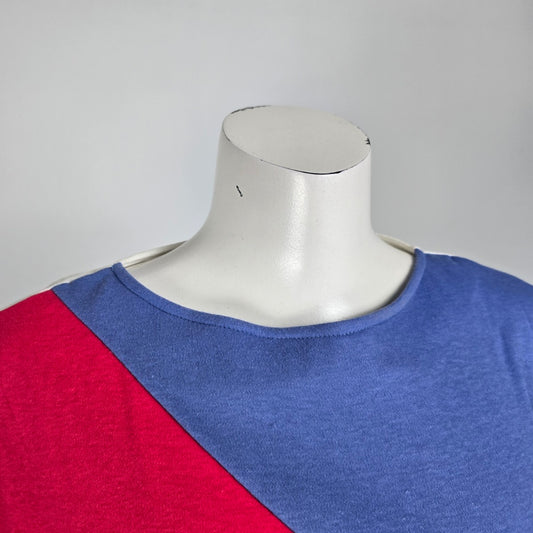 Vintage White Stag Blue & Pink Color Block Short Sleeve Top Size L
