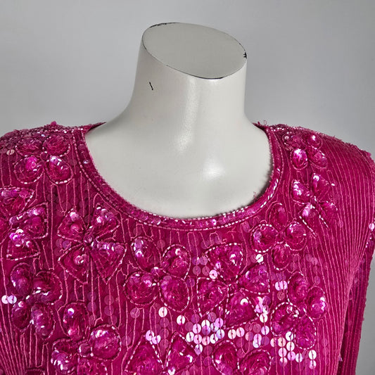 Vintage Scala Sequined Pink Floral Long Sleeve Blouse Top Size S