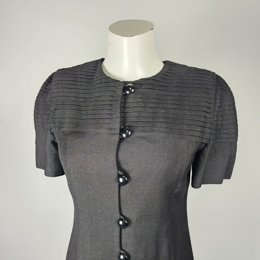 Vintage Richard Warren Bonwit Teller Black Linen Button Up Sheath Dress Size S