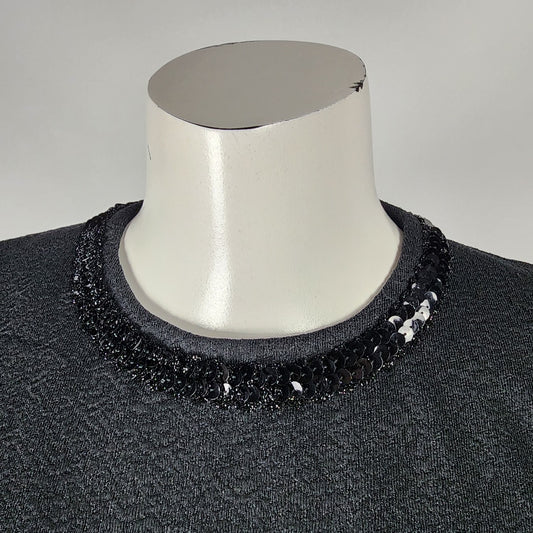 Vintage Black Sequined Detail Sheer Sleeves A Line Dress Size S