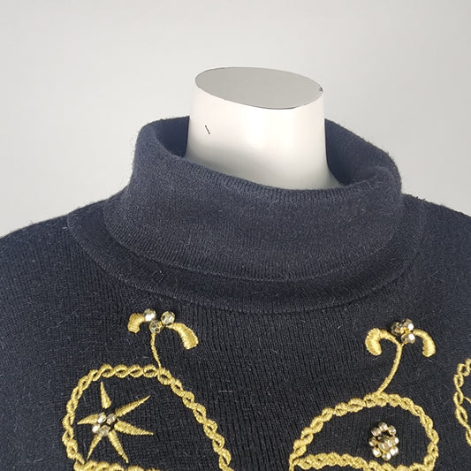 Vintage Ms. Sheryl Black & Gold Knit Sweater Size M