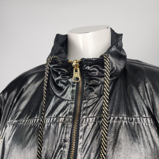 Vintage 80S Black & Gold Metallic Reversible Bomber Jacket Size M