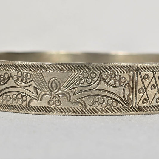 Vintage Silver Etched Cuff Bracelet