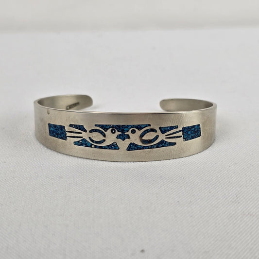 Mexico Sterling Silver Crushed Turquoise Inlay Cuff Bracelet