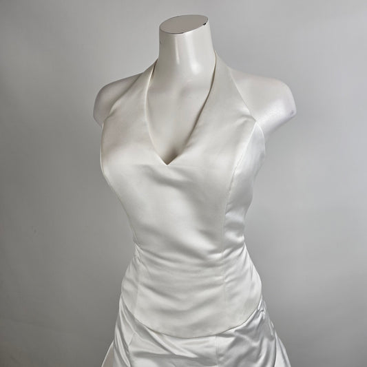 Vintage Mori Lee White Halter Neck Pickup Skirt 2 Pc Wedding Dress Size 15/16