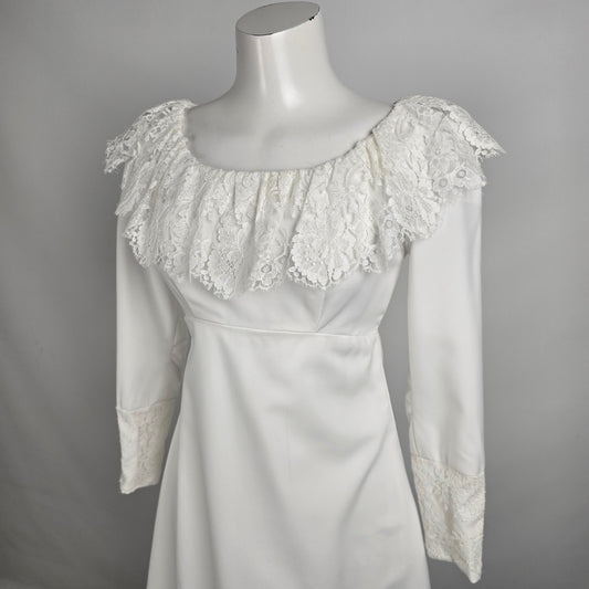 Vintage White Lace Detail Long Sleeve Wedding Dress Size XS/S