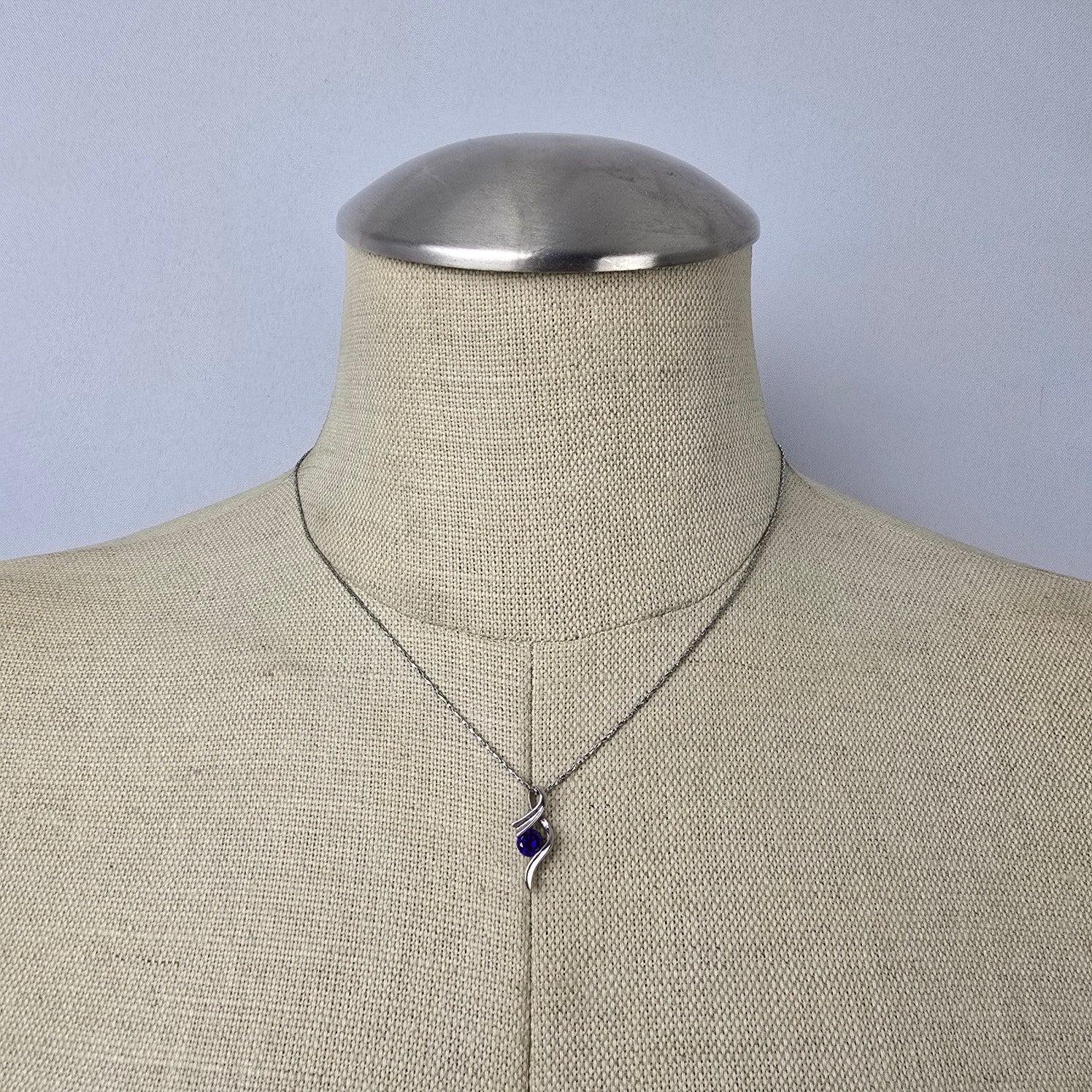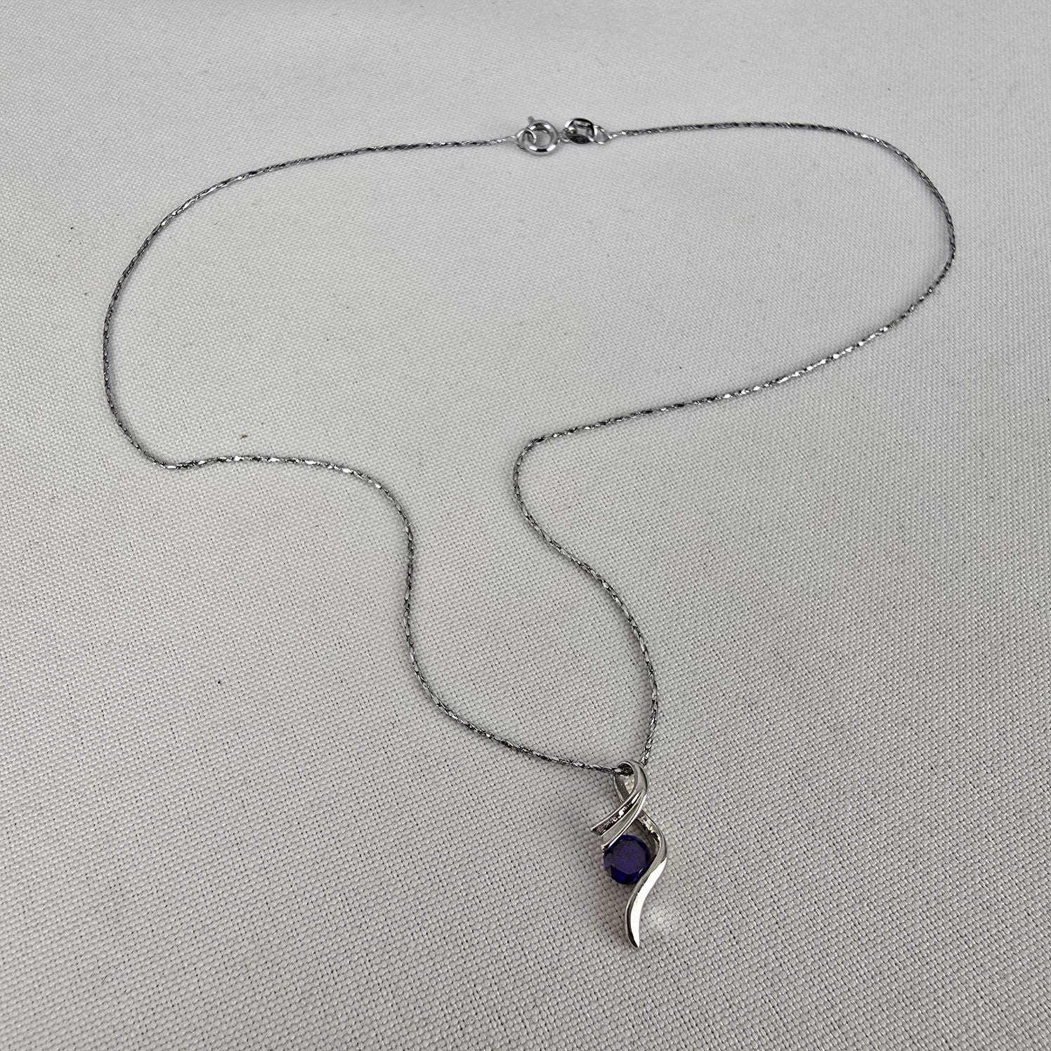 18KGP Silver Tone Blue Gem Stone Delicate Pendant Necklace