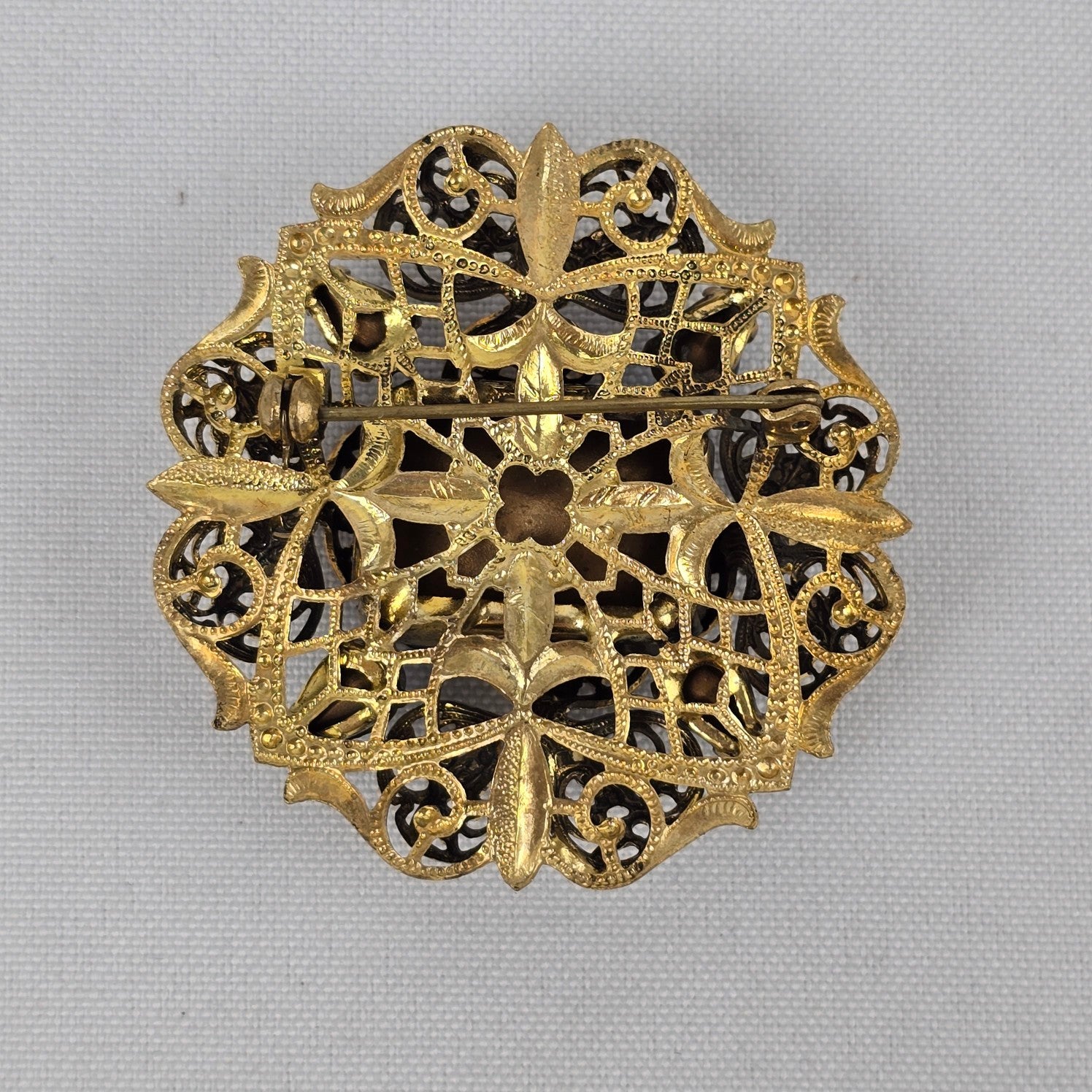 1940’s Czech Glass Metal Work & Blue Glass Stone Brooch