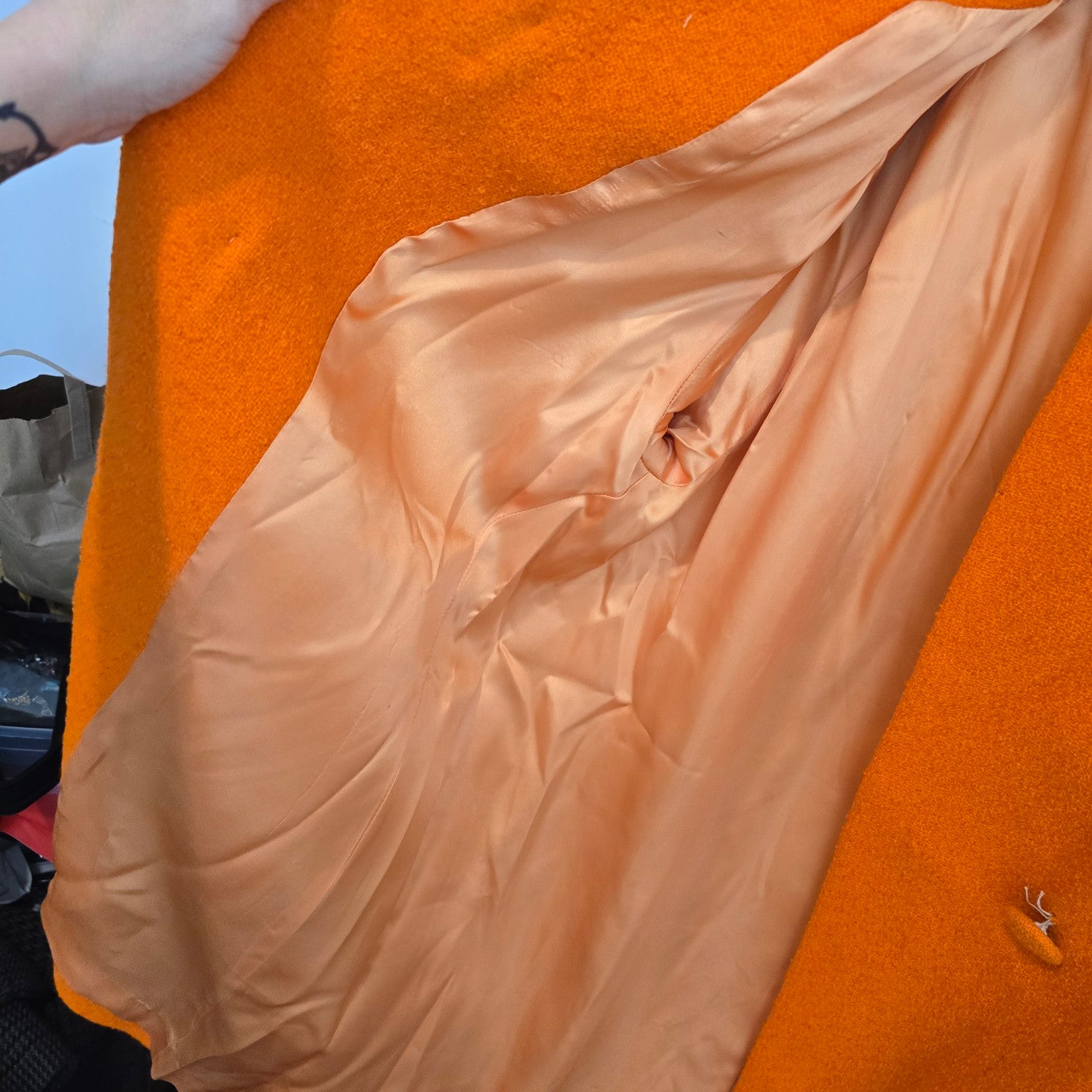 1960s Orange Wool Bouclé Swing Cocoon Button Up Coat Size S/M
