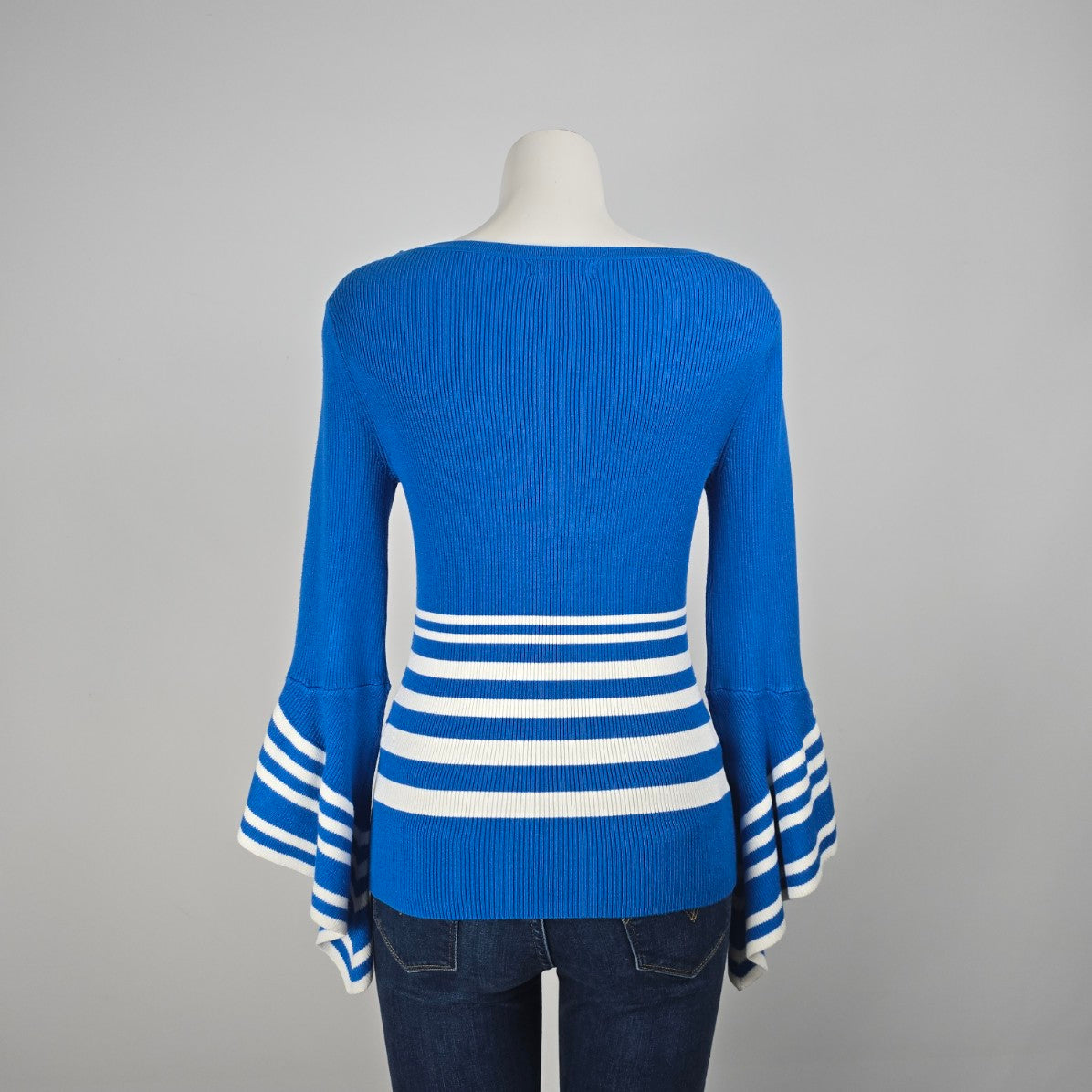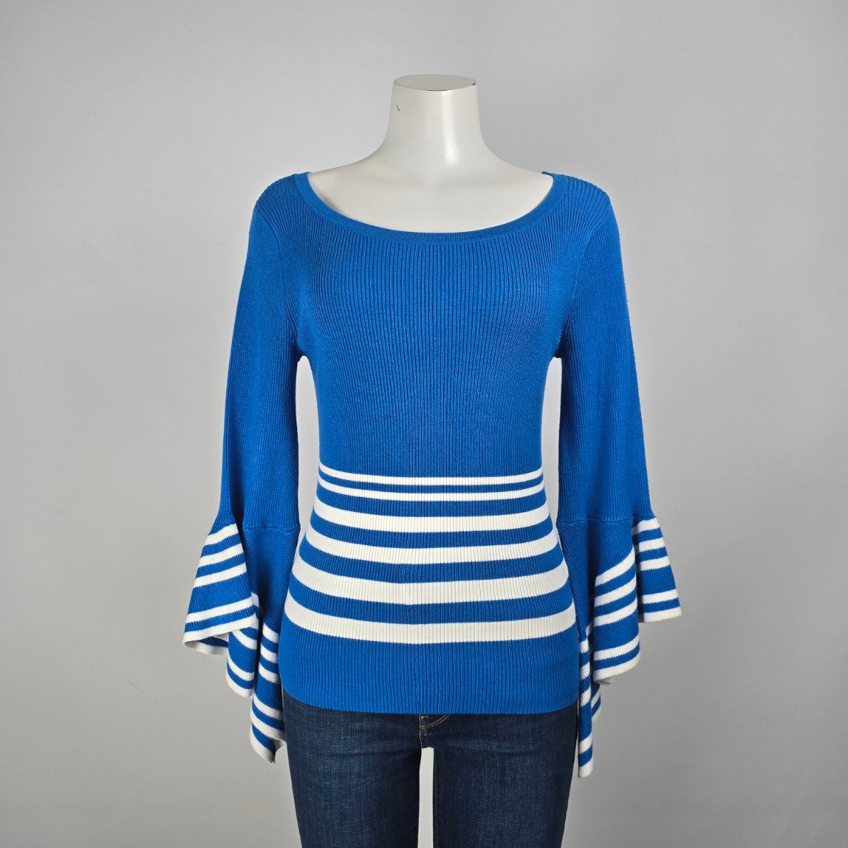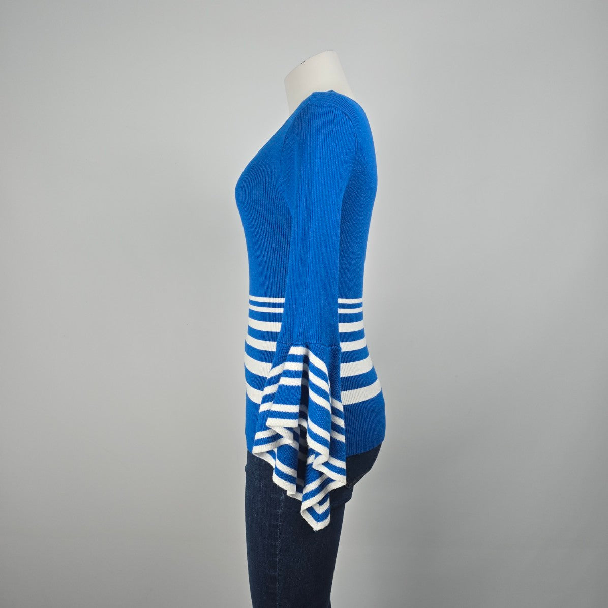 7th Avenue Design Studio Blue Knit Flare Sleeve Sweater Size S