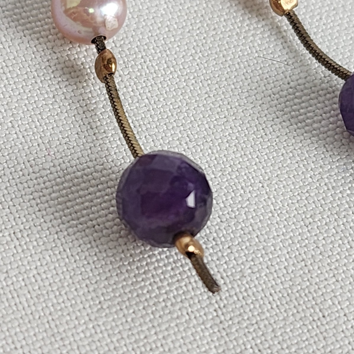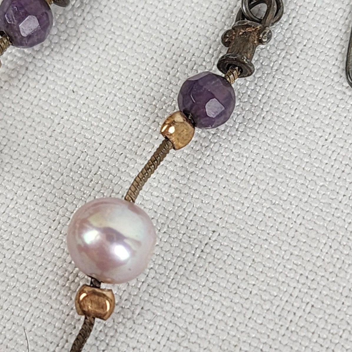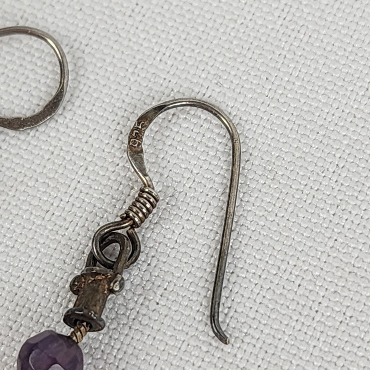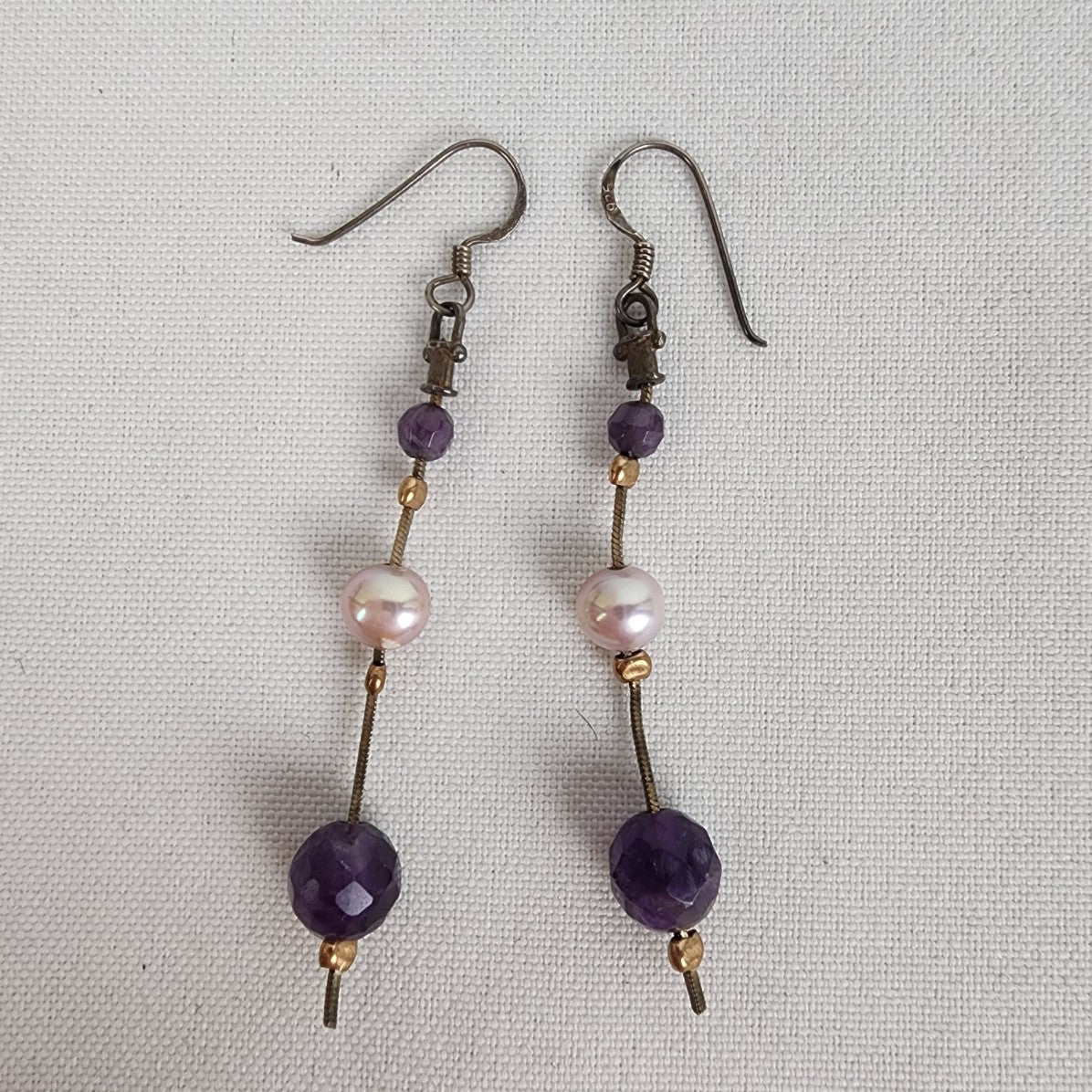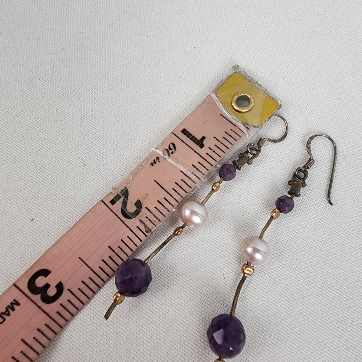 925 Sterling Purple Glass Bead Pearl Drop Earrings