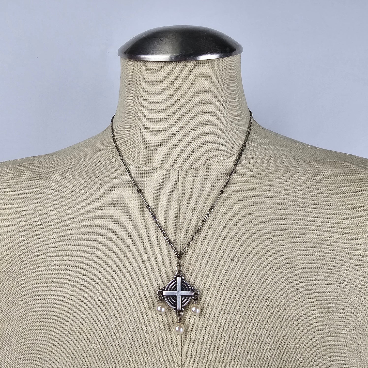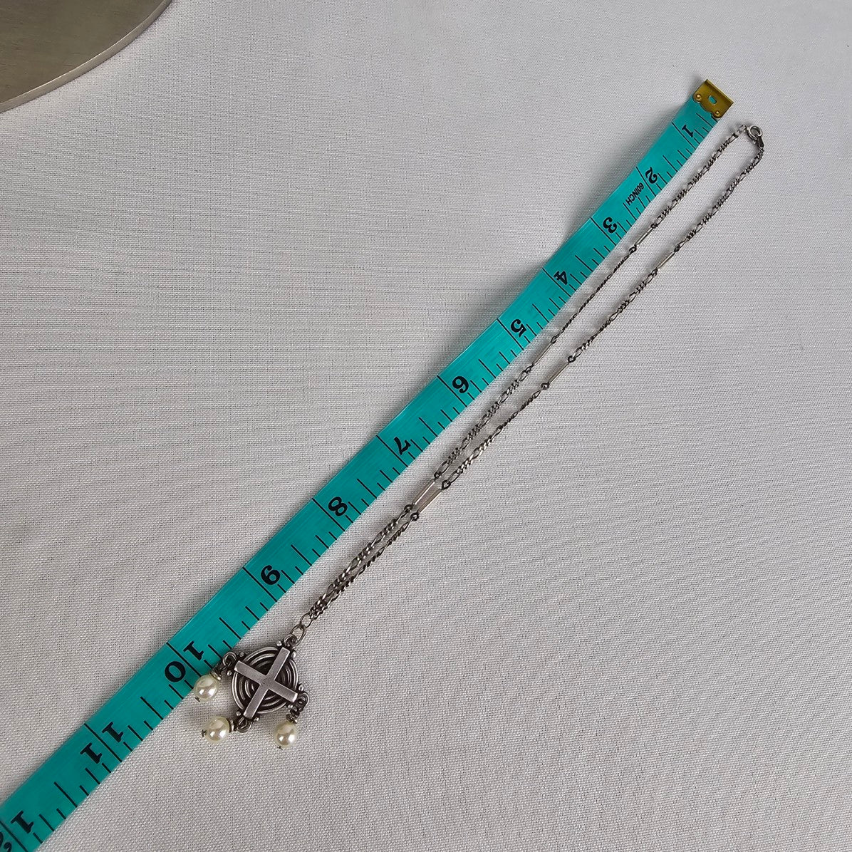 925 Sterling Silver & Pearl Drops Cross Necklace & Earring Set