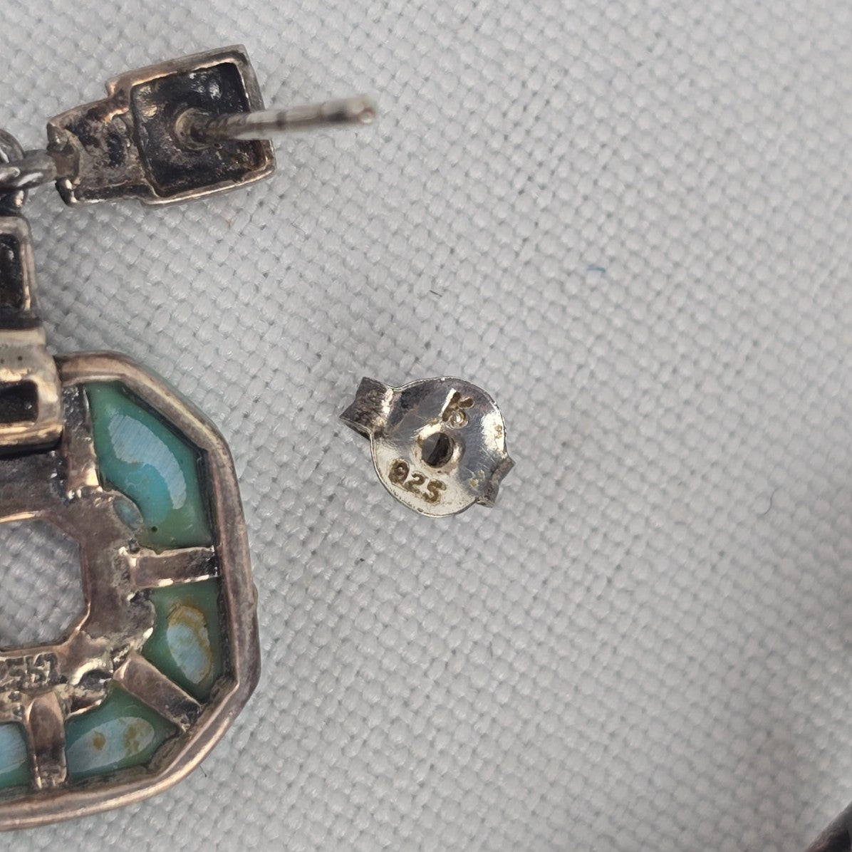 925 Sterling Silver Turquoise Pendant Chain Necklace & Earring Set