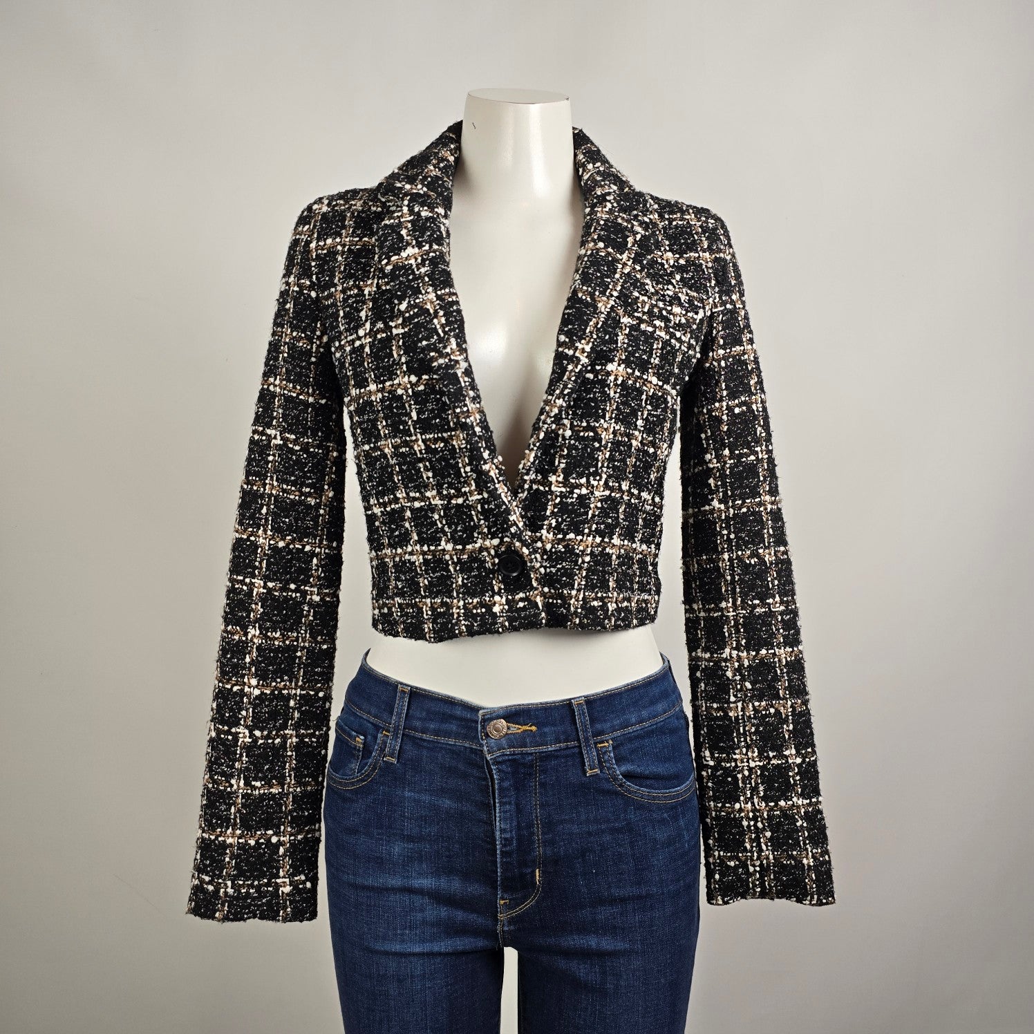 Abercrombie & Fitch Black & Brown Tweed Cropped Blazer Size XS