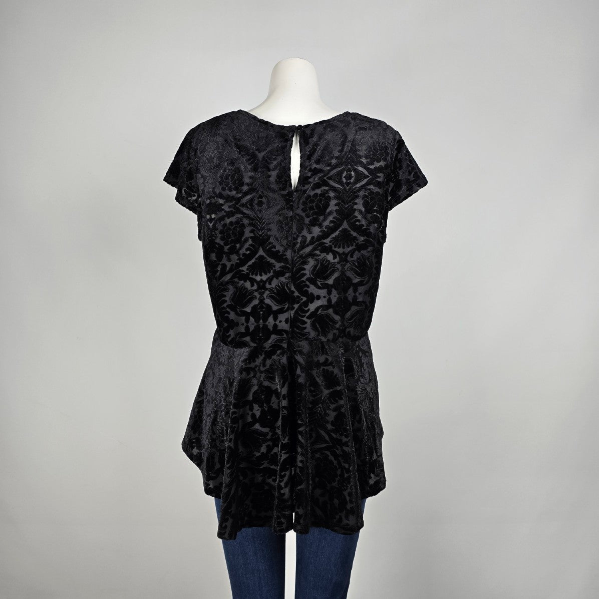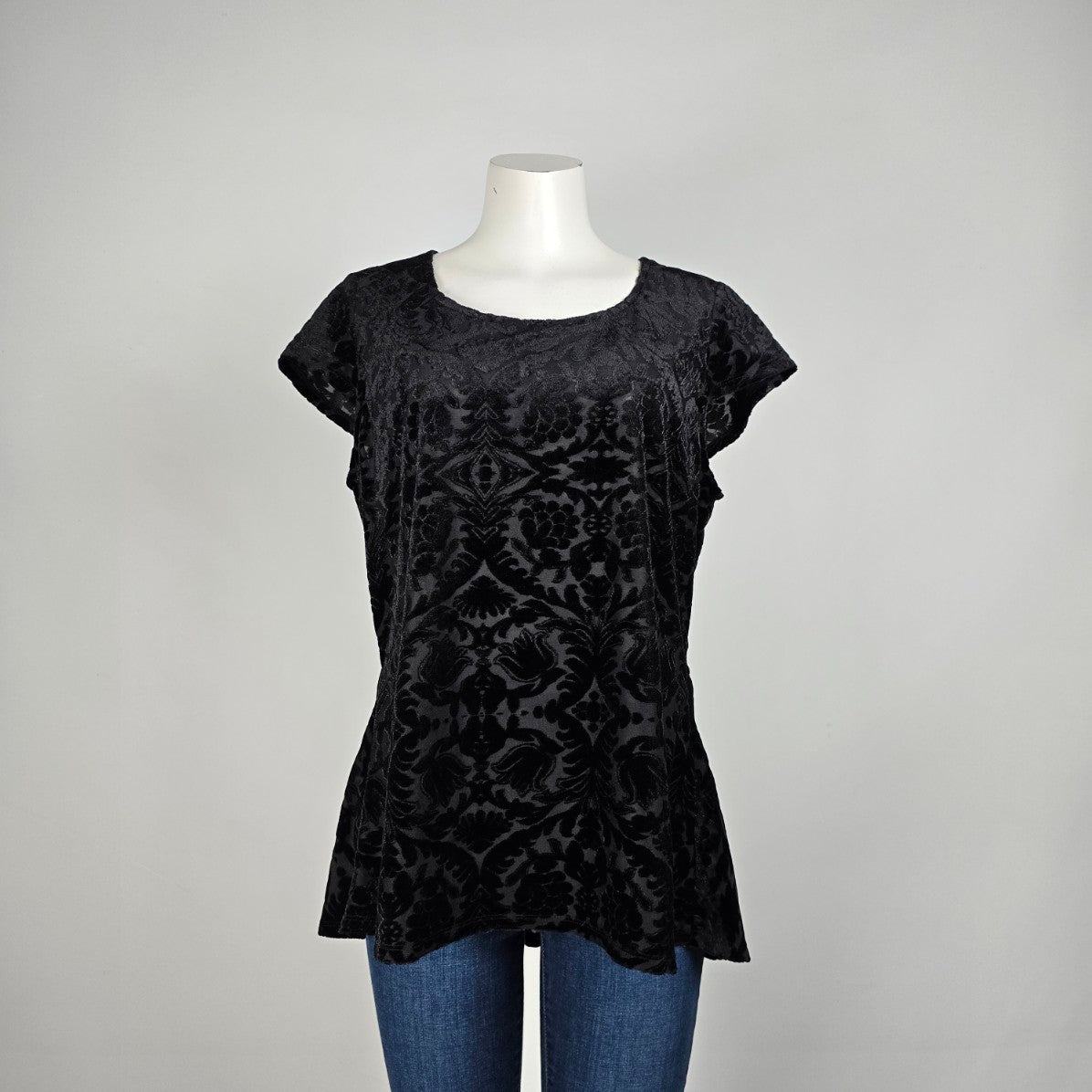 Addition Elle Black Velour Flower Top Size 1X