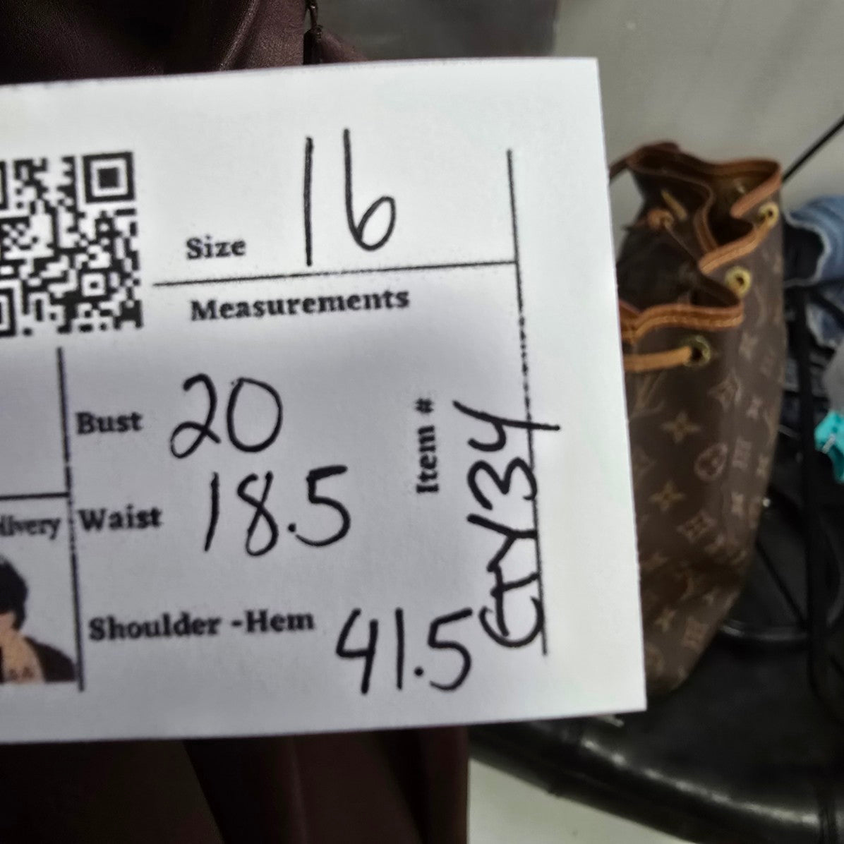 See last photos for fabric content and approximate FLAT measurements, compare our measurements to something in your closet to see if it will fit.