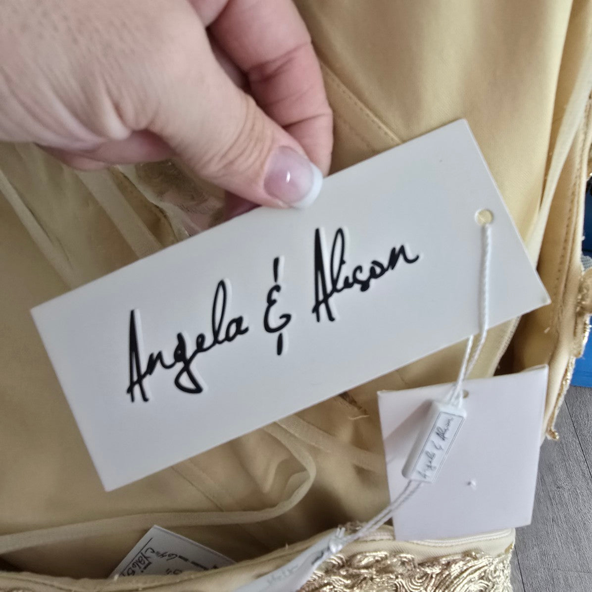 Angela & Alison Gold Embroidered Halter Eventwear Gown Size 12 Style 91084