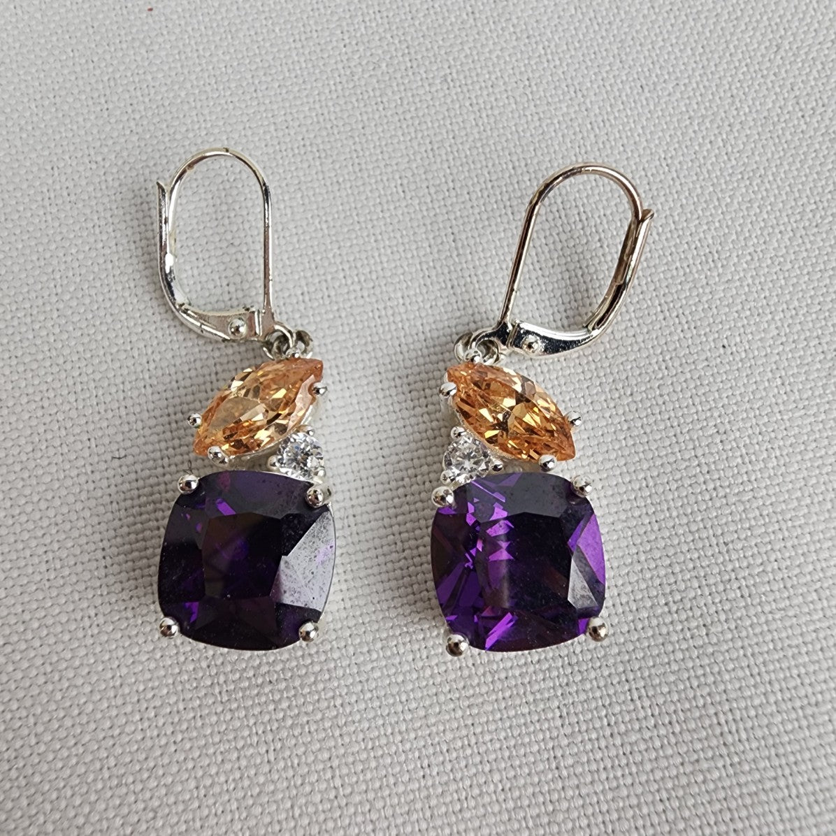 Avon Dare to Dazzle Purple & Orange Crystal Earrings