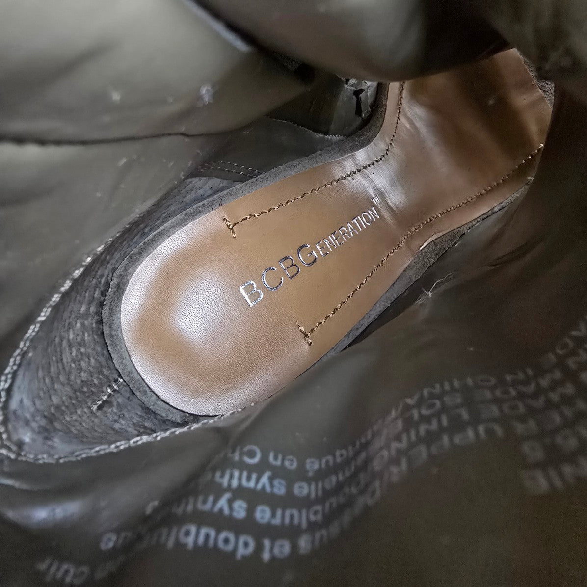 BCBG Generation Genie Suede Fringe Heel Open Toe Boots Size 5.5
