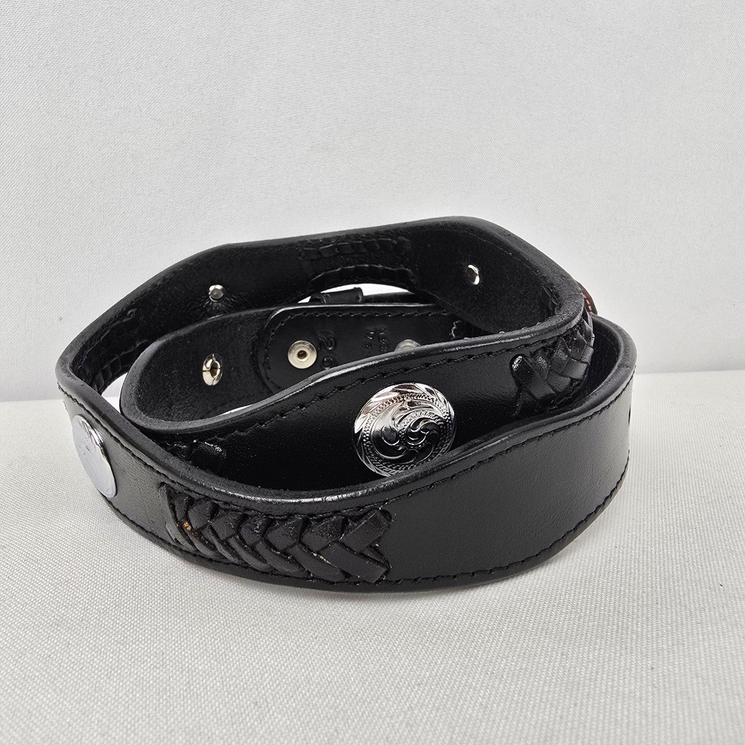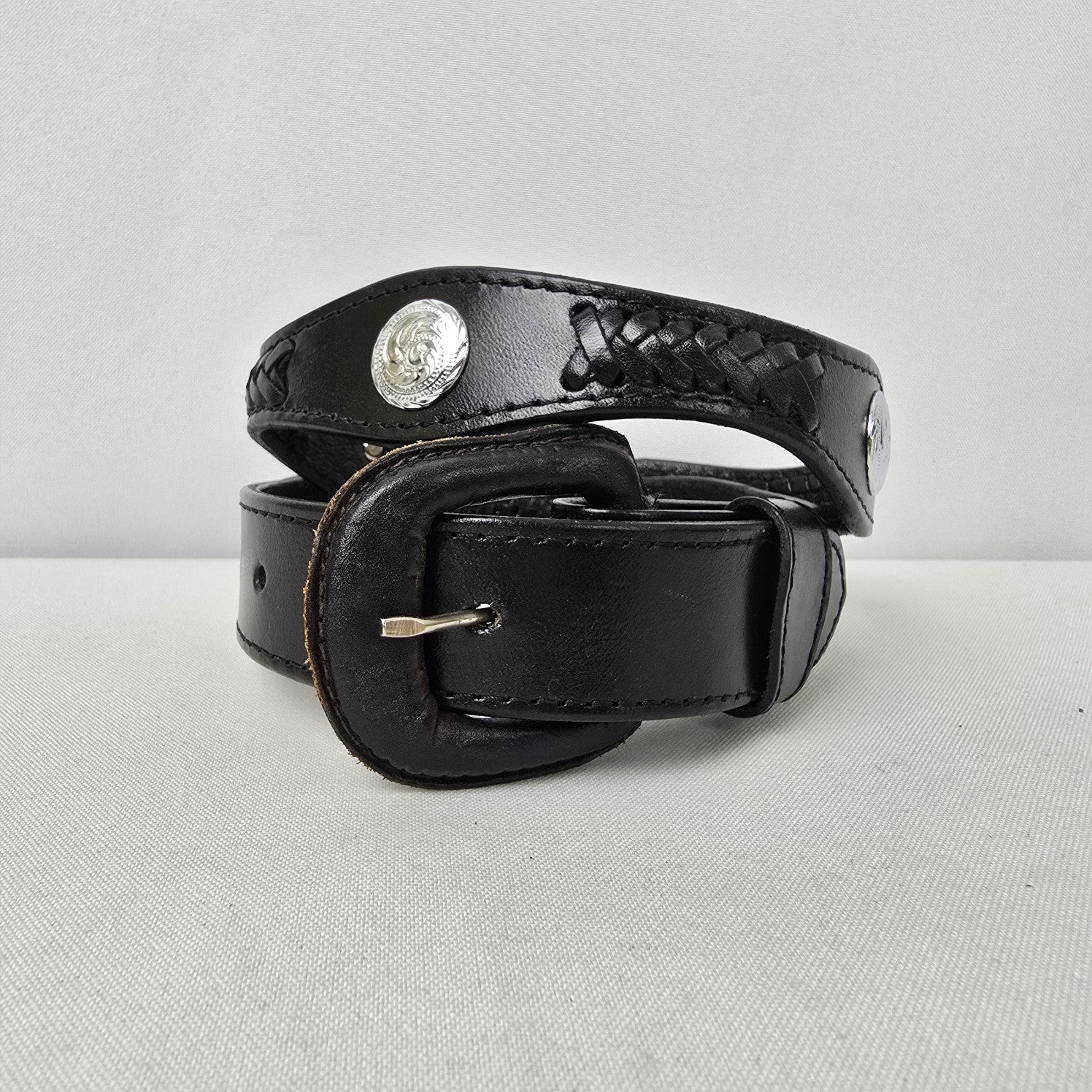 Black Leather Silver Studded Western Belt Size 26