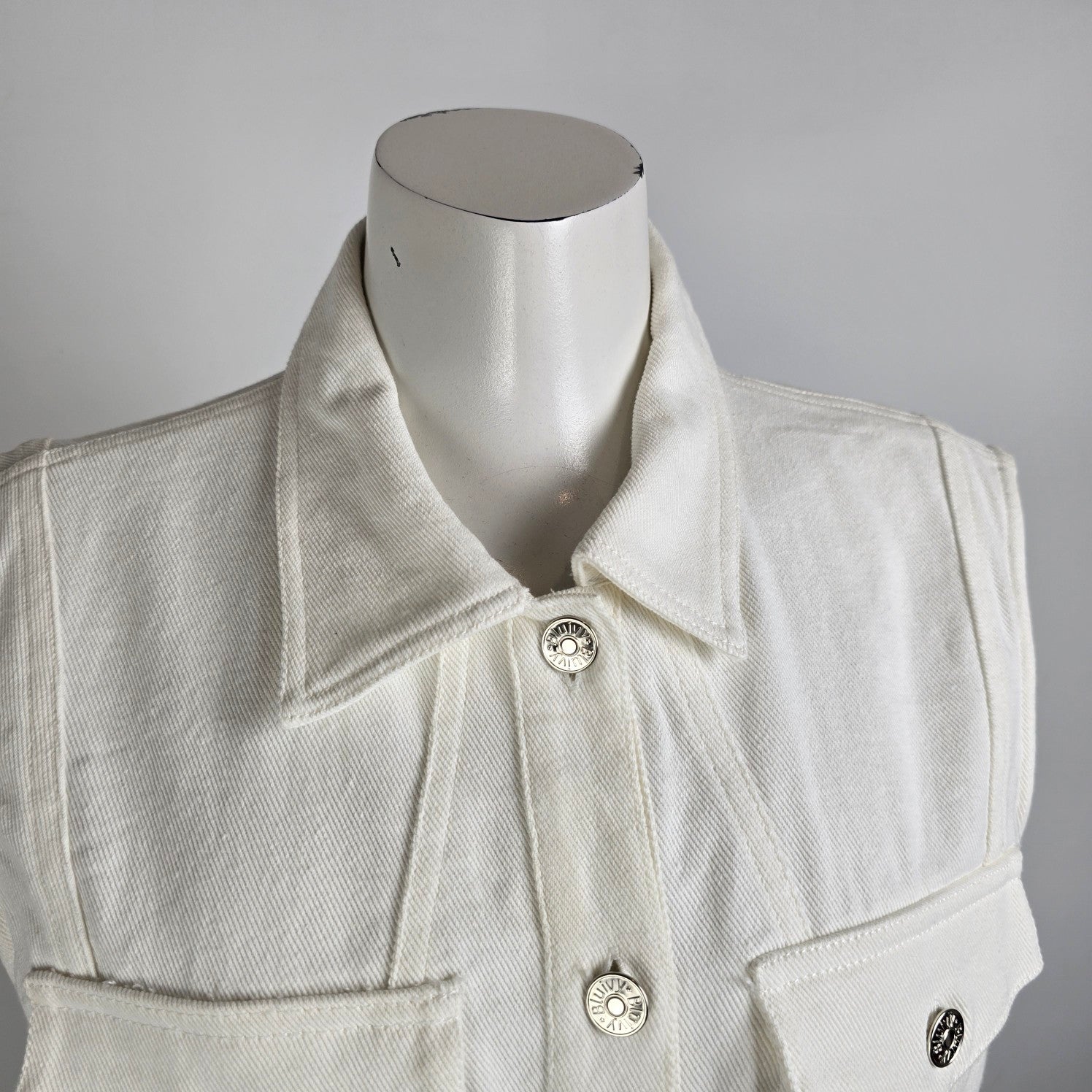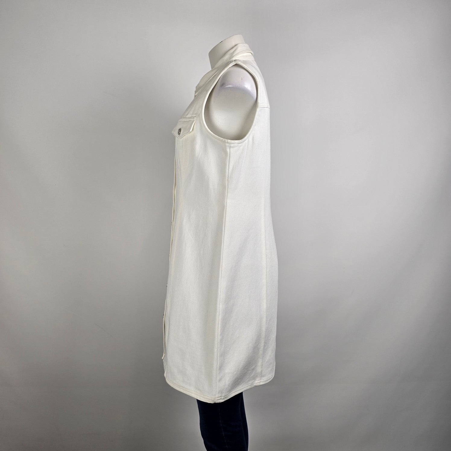 Bluivy White Cotton Denim Long Button Up Vest Dress Size L